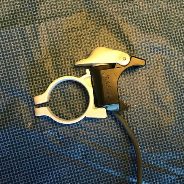 Utilizar abundante epoxy para pegar el conjunto del interruptor en el soporte y pegar la nueva manguera de escape al lado del interruptor. Si tienes el tiempo y la paciencia, le sugiero rozando algunos epoxy sobre el viejo puerto de escape y dejarlo parcialmente curan antes de mezclar un nuevo lote de epoxy y pegado todo el conjunto. Esto reduce la probabilidad de epoxy que fluye en la cámara a través del agujero viejo.