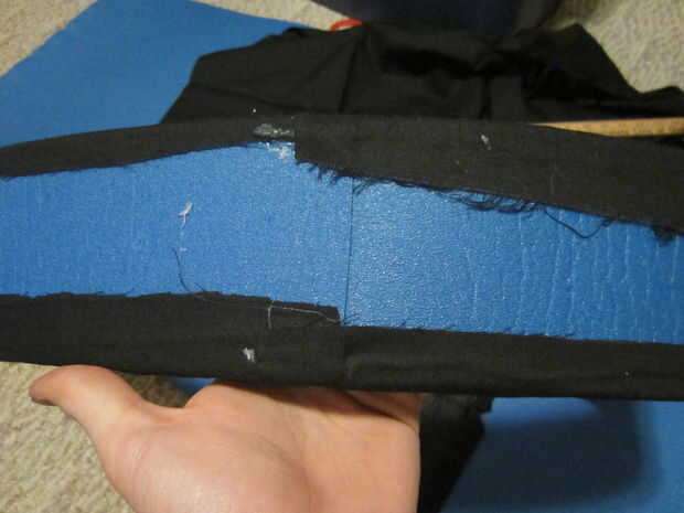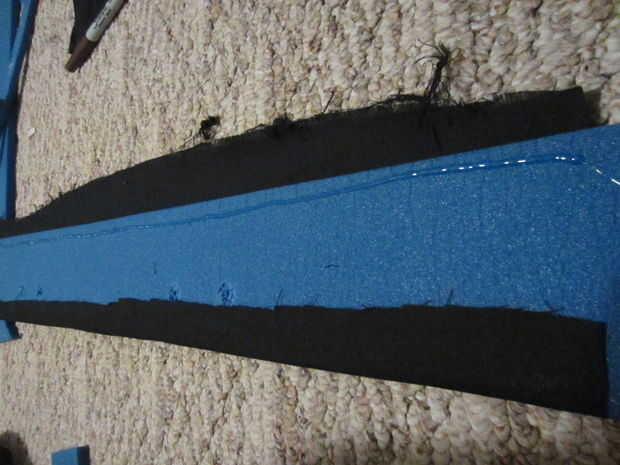 Utilizado fieltro para cubrir la espuma de la parte inferior. Primero cubrió el frente de la espuma con una capa fina de pegamento caliente y funcionó un reborde grueso alrededor del borde inferior. Luego lo pegué a la parte inferior de la maleta. Hice lo mismo en la tira para los lados pero izquierda ambos extremos arrastrado. Luego pegan los dos extremos de la tira y lo dejaron en el caso durante la noche, para permitir a la forma a la forma de la caja.