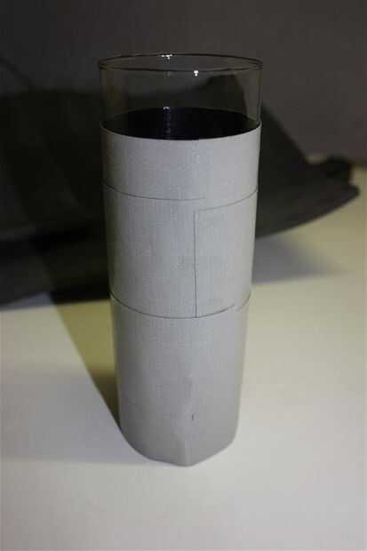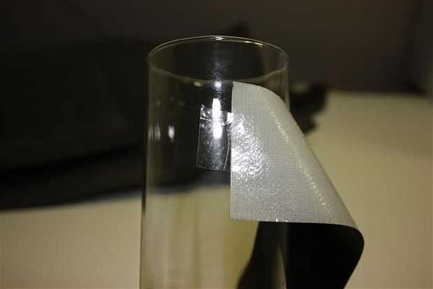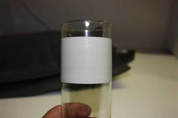Entonces tomó un trozo de cinta adhesiva transparente y había pegada a una pequeña plaza en la punta de la cinta y coloqué unos 20mm de la parte superior. La cinta mantenga la cinta mientras envuélvalo lado pegajoso hacia fuera alrededor del vidrio. No apretado para que el aislante se puede eliminar a lavar el vidrio y también para no perder para evitar que el deslizamiento del cristal hacia fuera en la parte inferior.