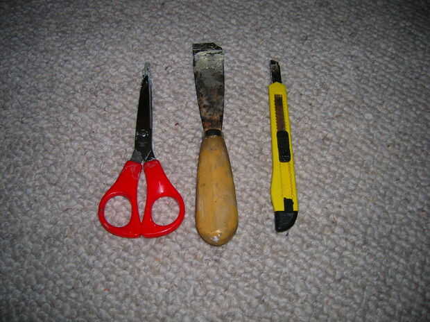 Un raspador para hacer palanca tiras de sujeción del vidrio y tiras de tiempo de caucho.