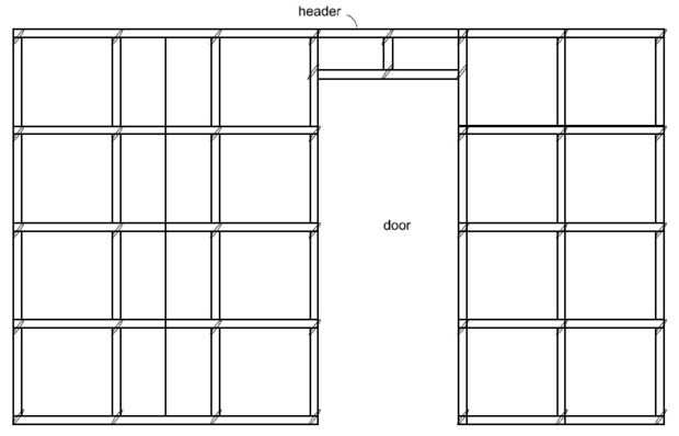 Construir la Rúbrica sobre la puerta después de que las paredes se atornillan en el lugar. Simplemente añadir unos trozos de bambú encima de la puerta para unir cada pared. Asegúrese de que la abertura de la puerta es vertical, cuadrado y el tamaño necesario para que la puerta se ajuste correctamente. Luego instale el buck de la puerta. Que la puerta del mismo tamaño que el espesor de la pared acabada, permitiendo para el yeso grueso a cada lado del dólar. En otras palabras, el yeso final será cada lado de la pelota. También puede curvar el yeso a un dólar más estrecho si prefiere bordes redondeados.
