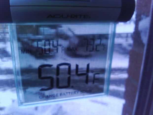 Resultados: 15 minutos después del tiempo de instalación final del tratamiento de ventana, tomé una foto del termómetro de la ventana. La temperatura entre la ventana y el revestimiento fue de 50,4 grados F. La temperatura exterior es 28F. La temperatura es de 69 grados F. Creo que los resultados hablan por sí mismos. Tenga en mente se trata de la misma ventana que el desmontaje de tiempo en un Instructable anterior.