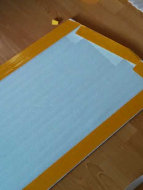 Al hacer el más grande de las 2 piezas que alinean el material, funcionó una tira de cinta contra el borde, retire el material entonces funcionó otra tira de cinta junto a la primera para que se peguen ambas secciones.