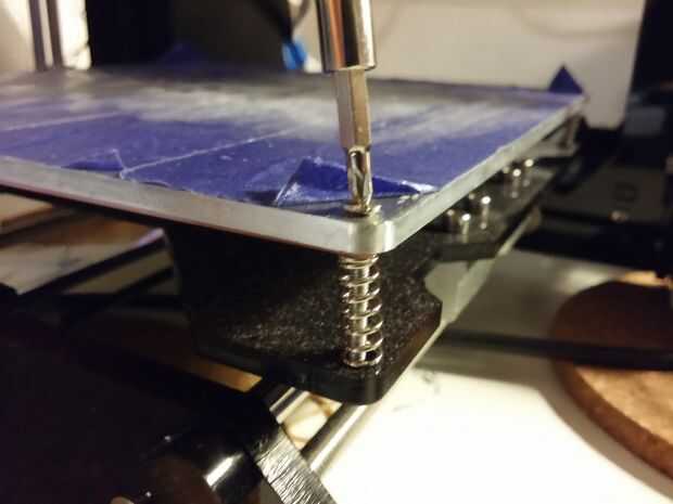 Cómo hacerlo depende de la impresora. Podría decirse que la impresora más popular de la manía es un derivado del diseño de i3 de Mendel Prusa. Aquí usted sólo desenroscar los tornillos de nivelación en cada una de las esquinas de la cama.