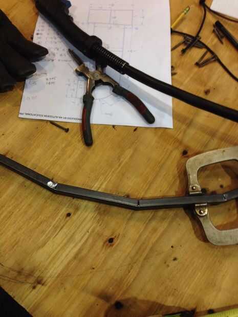 Creación de la J era un proceso similar. Aquí la parte difícil fue crear la parte curva. Hice una versión de un corte, esto se hace tomando la circunferencia exterior de la curva y restando la circunferencia interior y dividiendo entre 1/8"(el ancho de la hoja). Que da el número de cortes que tenía que hacer uniformemente a través de la longitud total. Al cortar el metal iba de un 80 por ciento de la manera abajo. Después de marcar el metal, lo había doblado donde estaban los cortes.