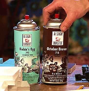 - Pintura en aerosol floral uso (imagen 4) para pintar los cuadrados de cartón pluma, 32 de ellos la pintura un color claro y 32 de ellos un color oscuro. Michele Beschen utiliza pintura en aerosol floral porque funciona bien en cartón pluma.