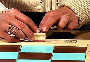 - Posición de la Junta para que un azulejo oscuro está en la esquina inferior izquierda. Utilice sellos de goma, pintura, una herramienta de leña u otros medios para agregar números y letras al marco para identificar los azulejos (imagen 6). En la parte inferior, se aplican los números del 1 al 8, comenzando a la izquierda, con un número debajo de cada azulejo. Por el lado izquierdo, se aplican las letras A H, a partir de la parte inferior con el A.
