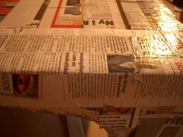 -Preparar la mesa. Si la cartulina está deformada o rasgada, los pies no están alineados o hay una brecha entre las capas de cartón, ahora es el momento de arreglarlo. Usuario la cinta adhesiva, pegamento, cualquier método necesario.
