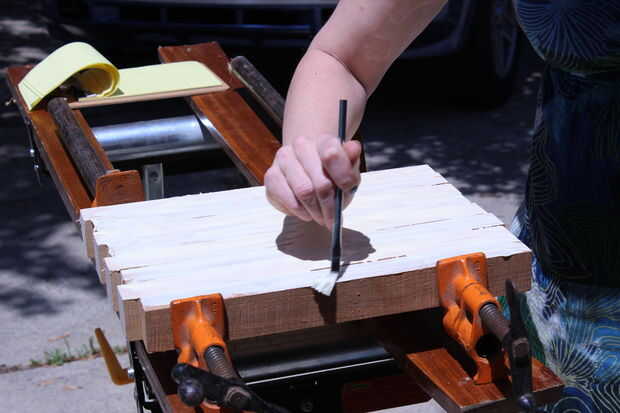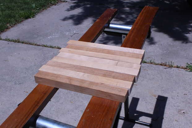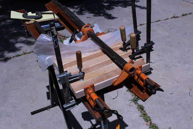 distribuyen uniformemente el pegamento en los bordes. Entonces pone cada tablero plano y abrazadera para arriba. Asegúrese de que nada se desliza y tratar como un loco mantener todas las tablas sostenidas firmemente planas y con presión uniforme.