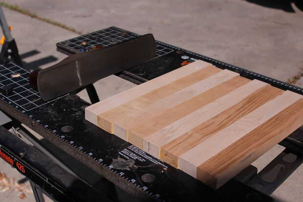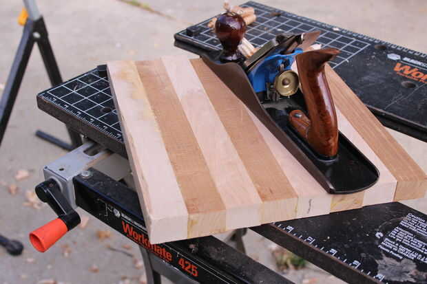 Después de que el pegamento está seco, use un raspador de pegamento para raspe todo el exceso de pegamento seco. Ahora usando una lijadora de banda o un plano de mano aplanar cada lado.