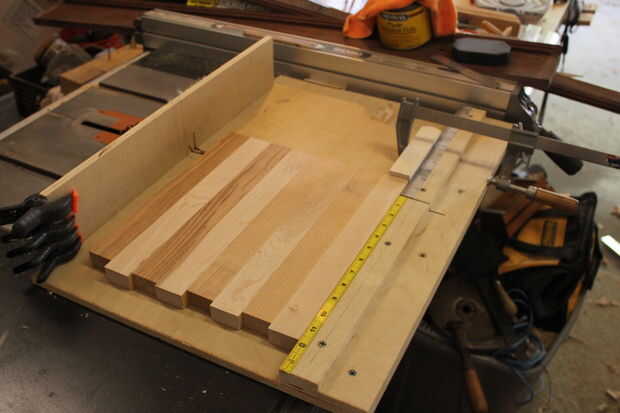 Utilicé mi patín del corte y del corte de final 1 final Plaza con uno de los bordes limpios. Luego, usando un bloque de tope fijado en 1.5" de las tiras de rip 8 hoja... Extienda las tiras cortadas y voltear cada tira del otro para formar el patrón de tablero de ajedrez y prepárate para otro pegamento