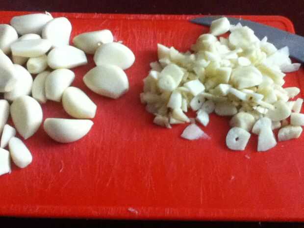 Así que esta es probablemente la parte más molesta de todo el proceso: peeling, rebanar, cortar en cubitos, palitos y picar el ajo. En primer lugar, pelar el ajo a la vez (sí, alguna vez pelado diente de todas las tres cabezas de ajo en la foto). Asegúrese de que todos los pedacitos de papel y tiene sus dientes totalmente pelado. Me encanta ajo usé mucho. Ahora, después de esto es todo hasta usted quiere que quieres hacer. He intentado con varios tamaños de piezas de ajo en mi aceite. Allí realmente no es ciencia a esto, sólo pensé varios tamaños sería más fáciles que intentar que sean las mismas. Trituradas de algunos dientes, dados otros, dejó todo un par y había descuartizado a otros. Vuélvase Loco, hacer lo que sea. Allí no es realmente un mal camino :)