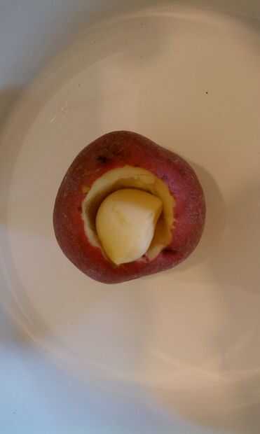 Ajo asado relleno de patatas rojas asadas (3 / 7 paso)