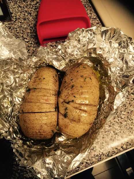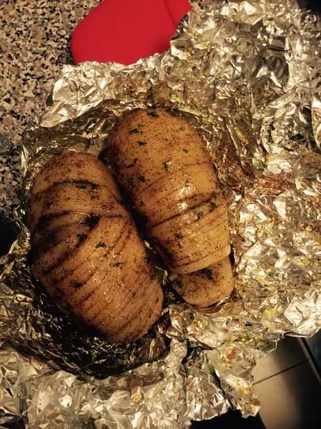 Las papas al horno son increíbles. Esta variación tiene cortes verticales hechos antes de cocer, lo hace la parte superior del mar crujiente como las patatas fritas y el centro sea cremoso. ¡Es lo mejor de ambos mundos!Este truco divertido se puede h