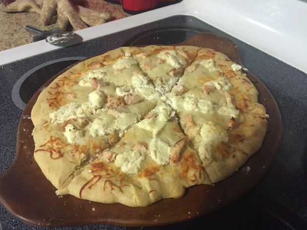 Esto es una cena rápida y sana, incluso nuestros niños les encanta!Tiempo de preparación es tan sólo unos 10 minutos o menos.Esta es una de mis pizzas favoritas. Mantequilla y queso, cada vez que lo cocino tengo que hacer 2 sólo para la familia. He