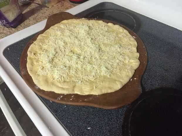 Esto es una cena rápida y sana, incluso nuestros niños les encanta!Tiempo de preparación es tan sólo unos 10 minutos o menos.Esta es una de mis pizzas favoritas.  Mantequilla y queso, cada vez que lo cocino tengo que hacer 2 sólo para la familia.  He