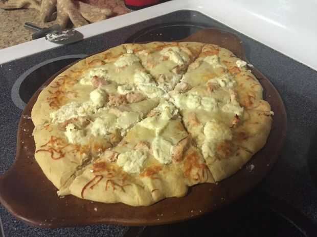 parmesano-Rancho Pizza de pollo con pimientos rojos asados (Feeds 4-6)Ingredientes:1 taza de agua 105deg.harina leudante de 2 1/2 taza1 paquete rápido-se levanta la levadura1 cucharada de polvo de hornear1 cucharada de azúcar una cucharacuchara 4 cuc