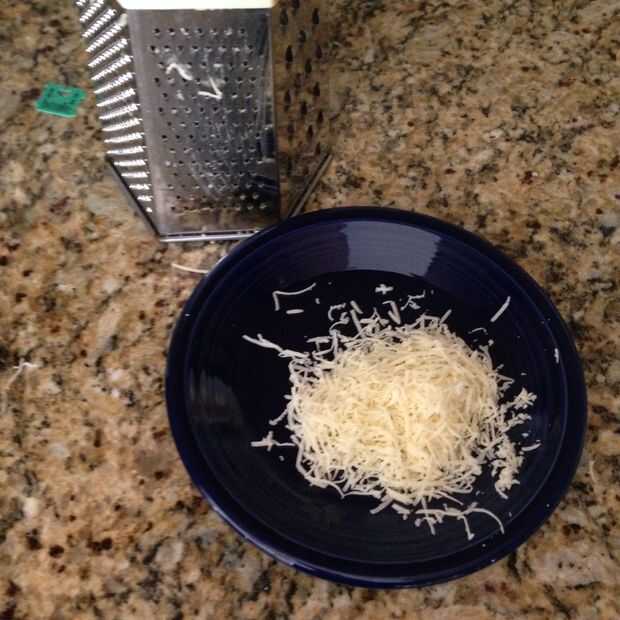 Rejilla 1/4 de taza de queso mozzarella. Cortar la mantequilla en tres rodajas.