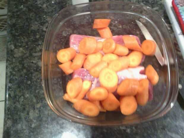 Corte las zanahorias a la consistencia deseada y el lugar en cazuela con portk.