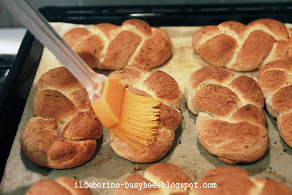 Hornear unos 15-20 minutos o hasta que tus rollos estén bien cocidos y dorados en la parte superior. Colocar los 10g restantes de mantequilla en la sartén con el ajo y el tomillo y se funden. En cuanto el trenzas cocidas cepillarlos con la mantequilla. Deje que se enfríe sobre una rejilla antes de servir.