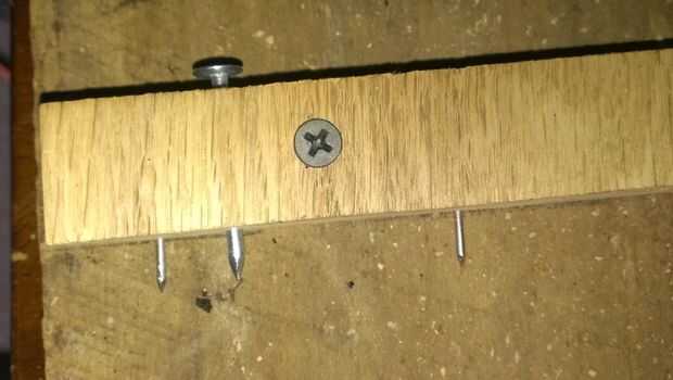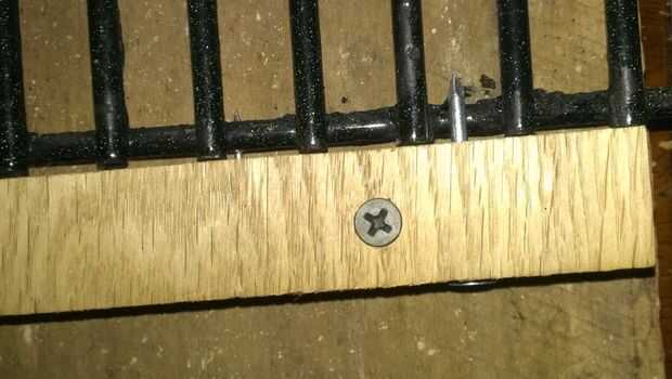 Algunos desechos de madera y clavos para acabado, hice algunas guías de deslizamiento para permitir que el estante de rejilla barbacoa deslizar longitudinalmente. Para evitar que la rejilla sin querer estar separada de la plataforma principal, utilicé otro clavo a través de un agujero de deslizamiento sobre la rejilla como un alfiler a cada lado. Esto sigue de elevación así como el deslizamiento cuando las clavijas estén engranadas. Puede que desee fijar el proyector a la plataforma así.