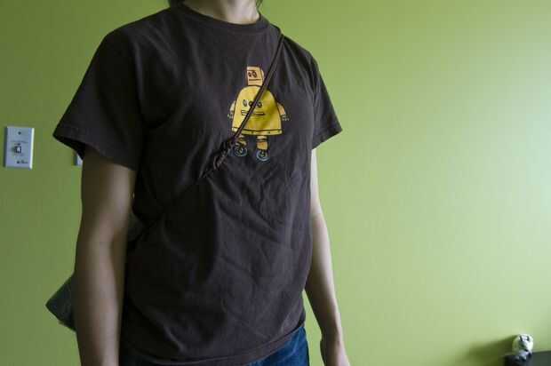 2. colocar sobre el cabestrillo tal que la parte con el as de guía lo nudo en la parte superior.