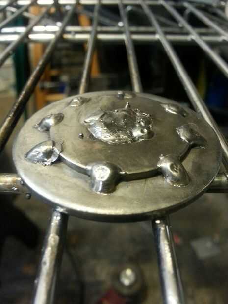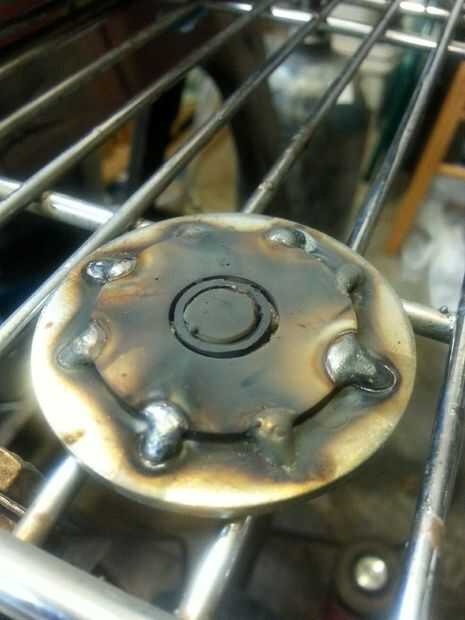 Soldar la varilla roscada en el tubo de acero, el tubo de acero a la arandela pequeña y la pequeña arandela a la arandela grande.