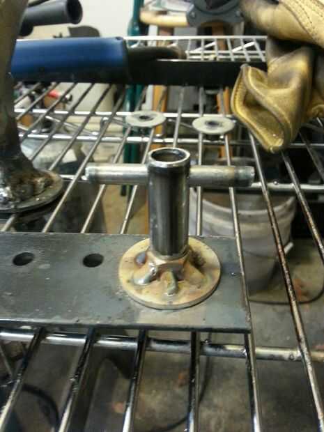 Empuje la varilla de acero en el tubo de acero y soldar en su lugar.