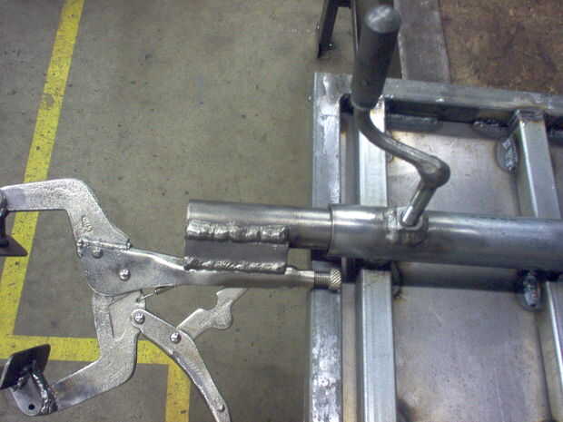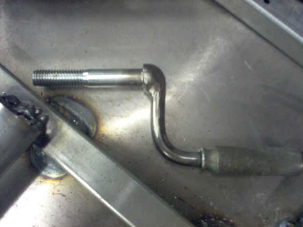 -Soldar con autógena la palanca "L" en el perno de bloqueo y limpiarlo para arriba (debe ser suave, ya que la mano va a ciegas para él debajo de la mesa).