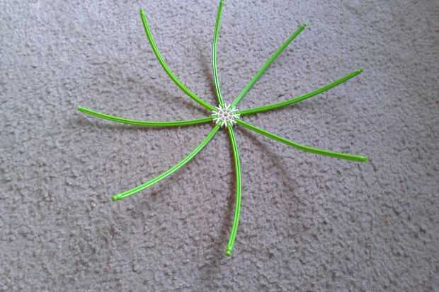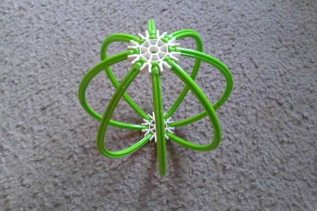 Un conector blanco y coloque a barras bendy verdes por todos lados.  A continuación, doblarse las barras verdes y sujete en la parte superior a otro conector blanco.