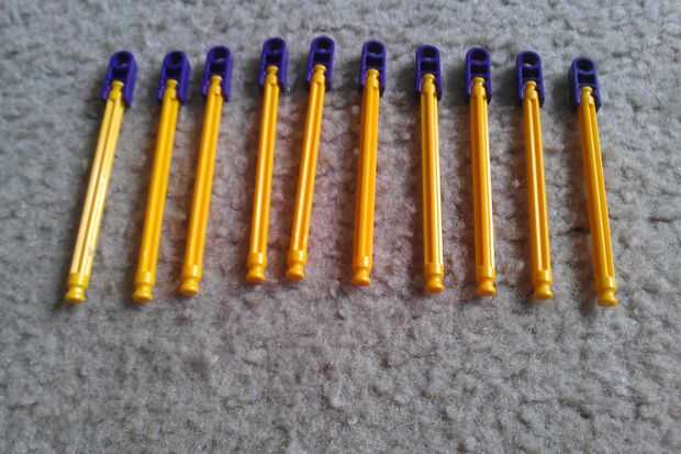 Tomar una barra amarilla y conéctelo a un conector de lazo púrpura. Repita el procedimiento para obtener diez piezas.