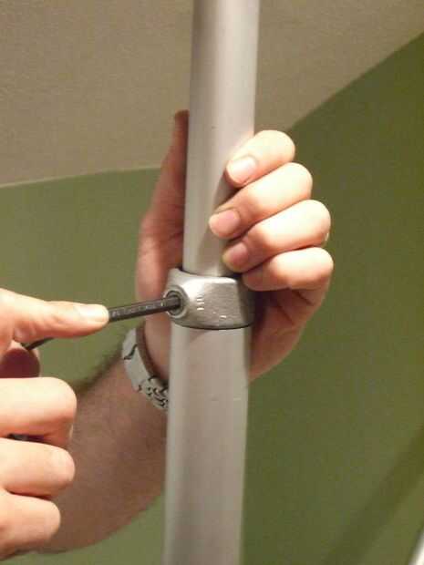 1" tubería debe deslizarse justo en el tubo de 1 1/4". Utilice el collar para mantener la tubería de 1" Deslice completamente hacia atrás en el tubo inferior. Trabajando juntos estos verticales crean un sistema telescópico que puede subir y bajar la pantalla.