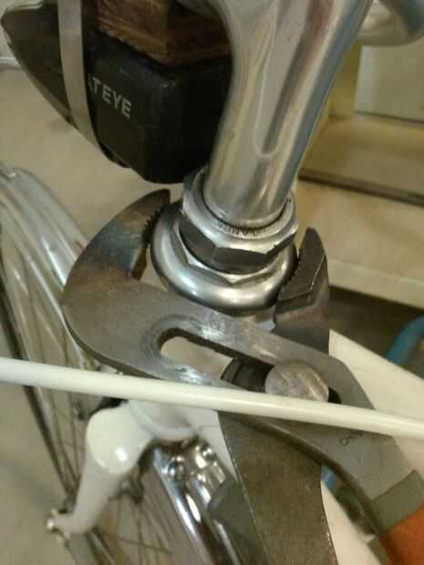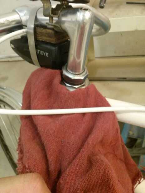 Si el auricular está demasiado apretado, trate de girar en sentido antihorario con la llave de la raza. Si la llave no se ajusta en la parte plana de la raza que una llave se adapta generalmente a, use un trapo sobre la llave y apriete en la parte lisa. Las imágenes denotan esto - la llave está en el mismo lugar en ambas fotos, pero el trapo se envuelve alrededor de la llave en la segunda foto. El trapo se ayudan a proteger contra el rasguño de la raza, pero tenga cuidado - fácilmente puede rayar tu carrera de esta manera.