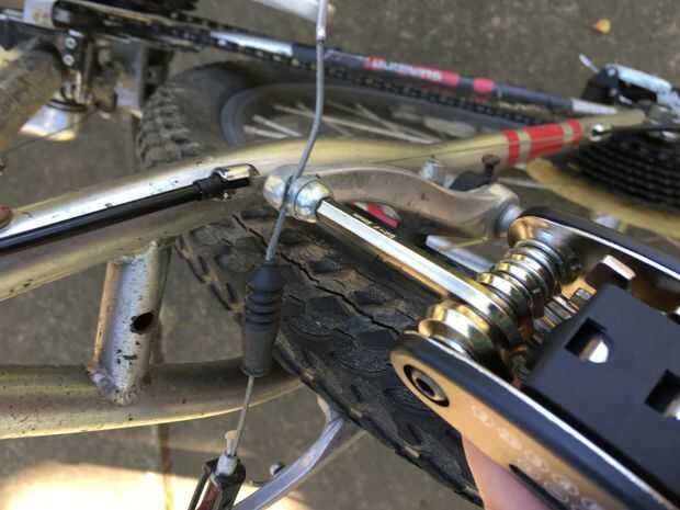 Quitar la parte delantera o las ruedas traseras, a veces la pinza se desalinea y necesita un reset rápido.Los pernos son generalmente 4 o 5 mm hexagonal.