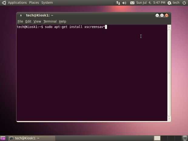En nuestros sistemas encontramos que incluso monitores LCD consiguieran quemados después de tiempo. No se supusieron que son capaces de hacer esto, pero estaban. Para remediar esto, hemos intentado conseguir los salvapantallas por defecto para llegar a. No eran grandes en la ejecución de un script. En su lugar la mejor opción para esto es instalar los paquetes xscreensaver. Me gustaria hacerlo desde la línea de comandos así que haga clic en aplicaciones, resalte accesorios y haga clic en Terminal. A partir de ahí introducir el comando "sudo apt-get install xscreensav * -y" sin las comillas. El asterisco al final permite a aptitude instalar todos los paquetes que comienzan con xscreensav, así instalar los salvapantallas adicionales disponibles.