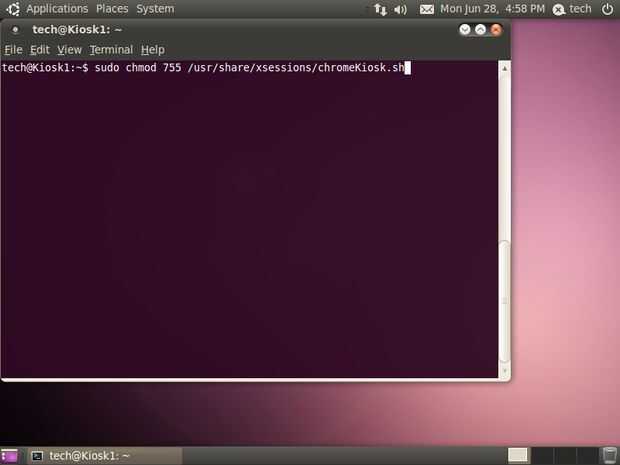 Después de crear estos dos archivos ejecutar "sudo chmod 755 /usr/share/xsessions/chromeKiosk.sh" en orden a hacer este script ejecutable. Consulte las notas de imagen para obtener más información.