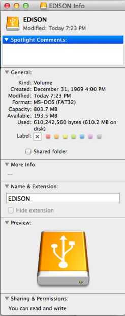 - Bajo "General:", si su Edison tiene formato MS-DOS (FAT16), continuar con estos pasos.