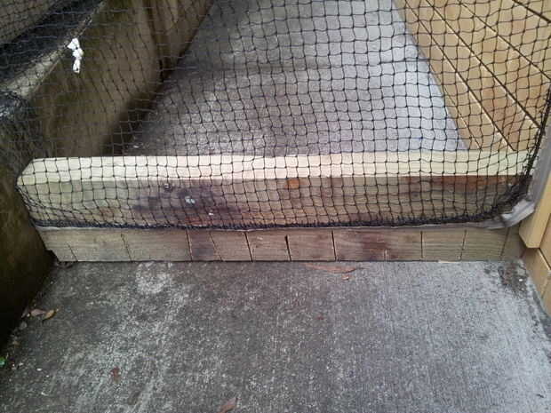 Utilizamos algunos durmientes tratados pesados, tiempo para mantener la red en el suelo.