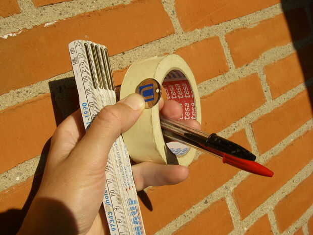 La segunda imagen muestra lo que usted necesita. La regla plegable puede reemplazarse por algún otro objeto plano con lados paralelos y la anchura conveniente. El gizmo de lanzamiento de carro de supermercado, puede reemplazarse por, digamos, una moneda. (Pregunta al abuelo. Nació antes de que cash se volvió obsoletos, cuando todavía se acuñaron monedas.)