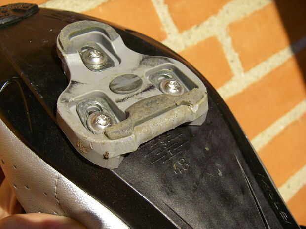 En la primera foto de arriba, puedes ver cuál es el problema. Con el fin de maximizar la eficiencia del pedaleo y minimizar el riesgo de problemas de rodilla, los tacos deben ajustarse cuidadosamente. Para que este proceso funcione sin problemas, más a medio camino zapatos de bicicleta grave tienen algún tipo de escala por debajo de. Mis zapatos parecen estar en el extremo inferior de esa categoría, solamente deportivos a escala moldeada, negra contra el negro, que desaparece por completo bajo la grapa en los laterales.