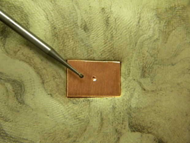 Usando la bola fresa hacen un pequeño corte en el metal donde desea establecer la piedra. Esto será el centro de ese y permite los pedacitos de taladro cortar fácilmente con alejarse de curso.