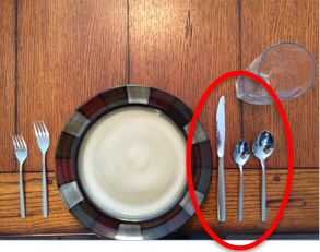 • Coloque la cuchara sopera, cuchillo y cuchara de la cena