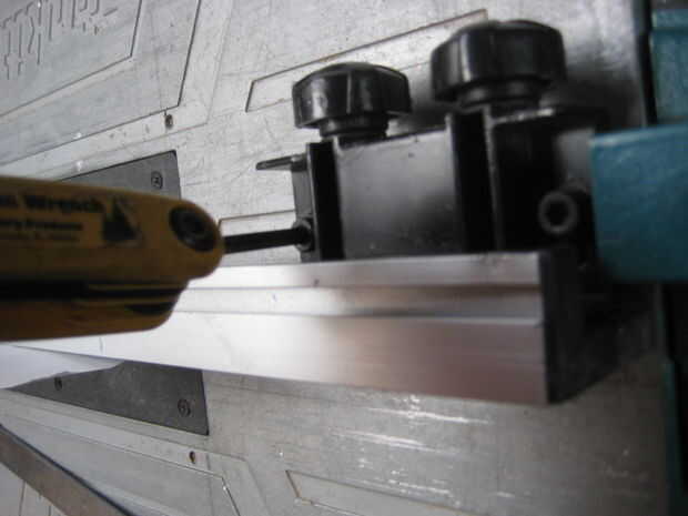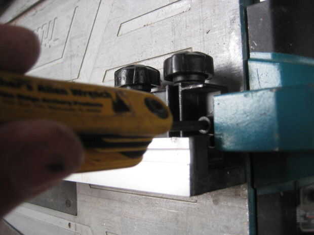 Deshacer tanto los tornillos Allen de claves sostienen el carrage de ajuste en el mecanismo de deslizamiento de fundición de aluminio
