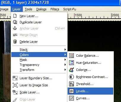 Desde el menú desplegable, seleccione capa->colores->niveles.