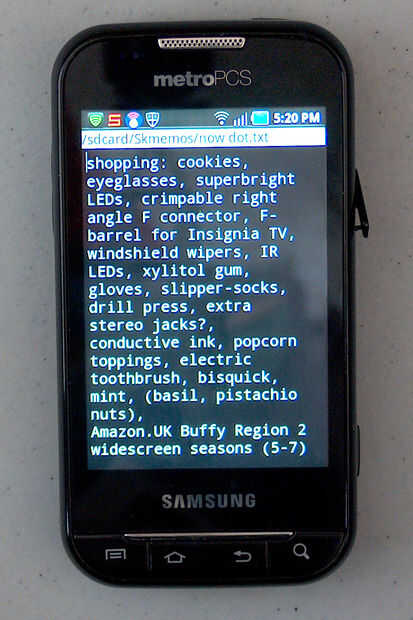 En el netbook es fácil – contraseña de la carpeta cifrada. El smartphone Android es más difícil. Puesto que tiene una cantidad relativamente pequeña de la memoria, que no quiero un duplicado de mi carpeta de microcloud todo, archivos críticos sólo como mi lista de tareas. La lista de tareas incluye mi lista sencilla de cosas para hacer, pero también incluye números de teléfono, direcciones y otros datos personales. La solución actual es hacer un archivo separado, "ahora-do", que incluye sólo la primera mitad de mi archivo de tareas. Yo cree el archivo manualmente con cortar y pegar y luego copiarlo a la tarjeta de memoria SD de mi Android pero automatizar el proceso.