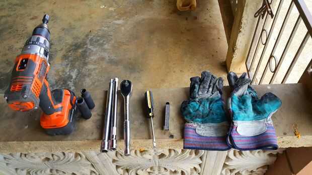 Seguridad primero como siempre. Freno de mano para arriba, la transmisión en neutral, el volante girado completamente hacia la izquierda. No hay que quitar la rueda delantera izquierda.