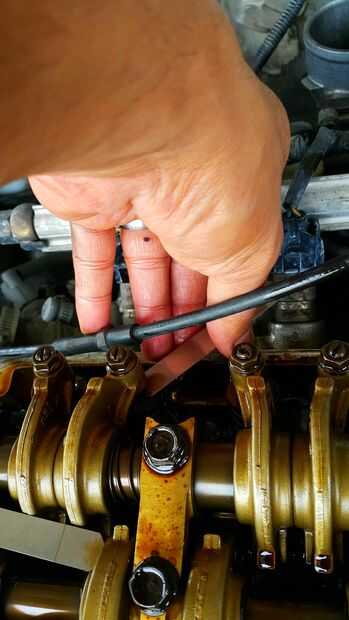 Triplicado comprobado cada válvula. Una vez completado gira el cigüeñal nuevo y trajo cada cilindro a TDC, otra vez comprobando cada separación de la válvula.