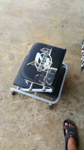 Usé mi mano debajo del rodillo de coche que se transforma en una silla. Se recomienda estar cómodo durante este paso.