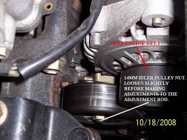Para la banda del serpentín: Asegúrese de aflojar ligeramente la tuerca de la polea tensora de 14mm antes de ajustar la varilla de ajuste roscado de 8mm.