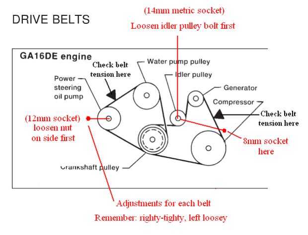 Para la más pequeña correa que va alrededor de la dirección asistida y bomba de agua, asegúrese de aflojar la tuerca de 12mm en el lado para que pueda mover la bomba de dirección antes de ajustar la tuerca de 12mm en la varilla de ajuste roscado.
